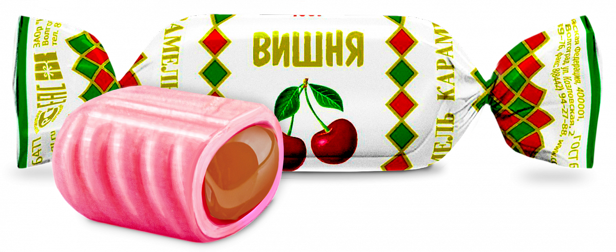 Rusiyanın “Konfil” qənnadı fabrikinin “Вишня” karameli yumşaq içliyi və şəkərli örtüyü ilə seçilir.