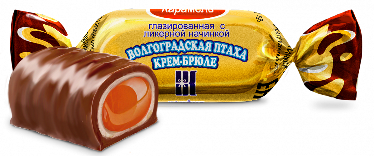 “Волгоградская птаха крем-брюле” karameli tanınmış “Konfil” qənnadı şirkətinə məxsusdur və uzun illərdir şirniyyat bazarında öz yerini qoruyur.