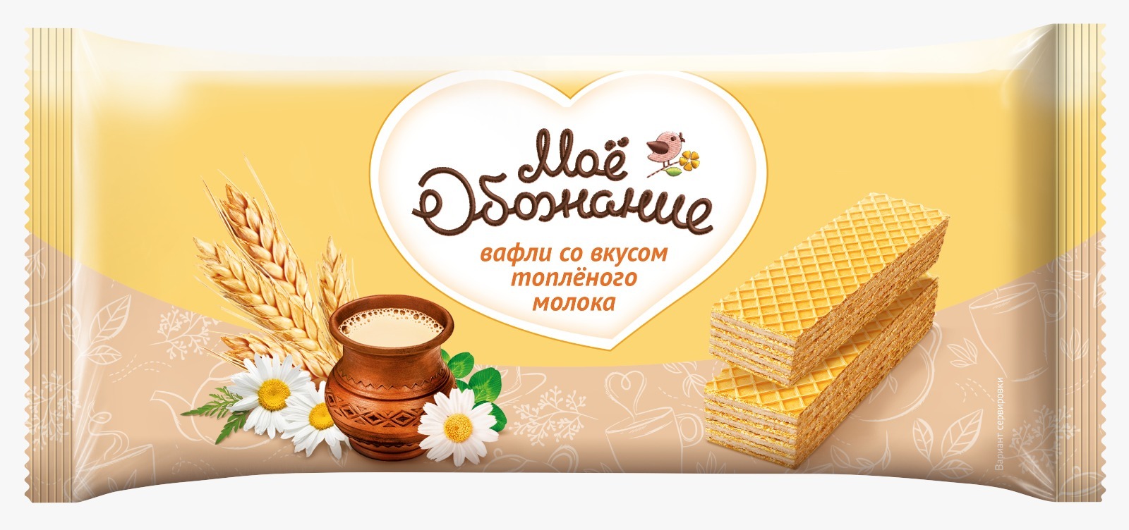 “Моё обожание” vaflilərinin əsasən üç çeşidi var: kərə yağlı, südlü və şokolad içlikli.