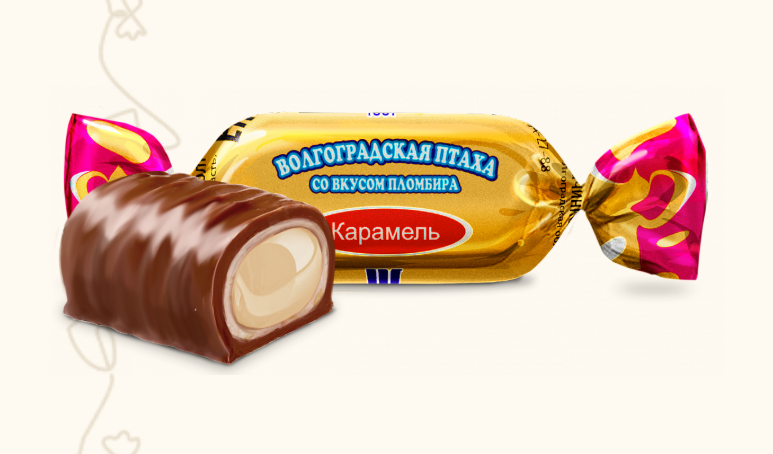 “Волгоградская птаха со вкусом пломбира” adlı bu məhsul xüsusi texnologiya ilə hazırlanmış qlazurlu karameldir. Onun əsas xüsusiyyəti daxilində yerləşən jele tipli içliyin klassik “plombir” dondurma dadını xatırlatmasıdır.
